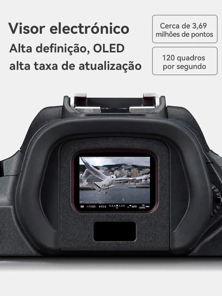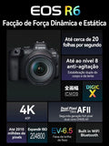 - Processamento DIGIC X: Aproveite o poder do processador emprestado da linha R3, proporcionando velocidades de disparo de até 40 fps com obturador eletrônico e até 12 fps com obturador mecânico, garantindo captura precisa e sem perder nenhum detalhe.