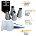 O adaptador incluso garante um encaixe perfeito entre os bicos e o saco de confeitar, evitando vazamentos e permitindo que você decore com facilidade e precisão.