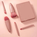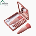 🔹 Praticidade em Cada Detalhe: Com nosso kit compacto de 5 pincéis de maquiagem, você tem tudo o que precisa em um só lugar! Perfeito para viagens e dias corridos.