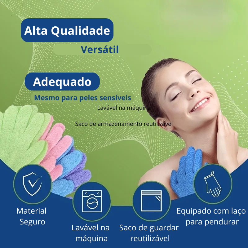 Com a Luva Esfoliante de Banho, você garante uma pele mais suave e radiante a cada uso! Sem produtos químicos agressivos, ela remove as células mortas de forma eficaz, estimulando a renovação celular e deixando sua pele macia e revitalizada.