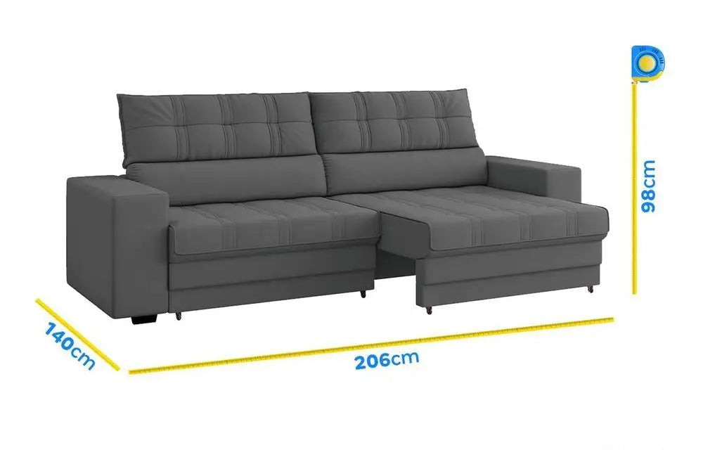 A estrutura robusta de madeira e os pés fixos em PVC na cor tabaco garantem durabilidade, enquanto o revestimento antibacteriano e antimofo traz mais segurança e bem-estar. Além disso, a densidade D28 no assento e D18 no braço proporcionam um conforto incomparável.