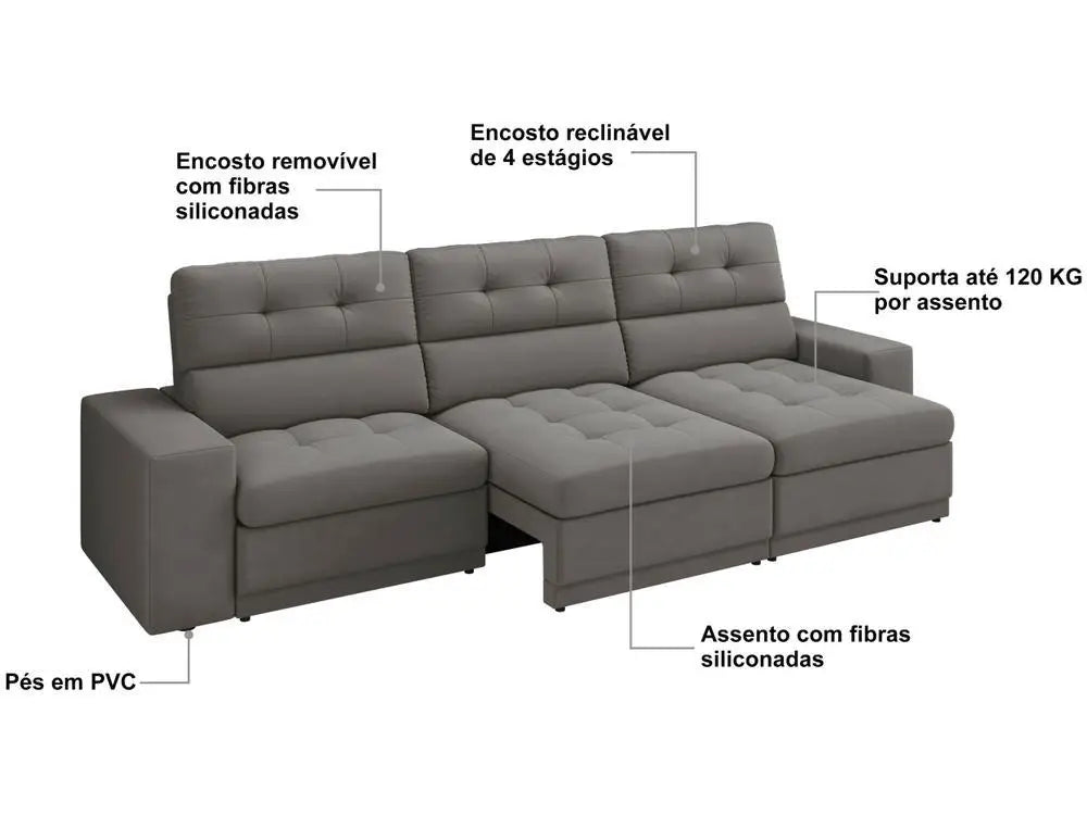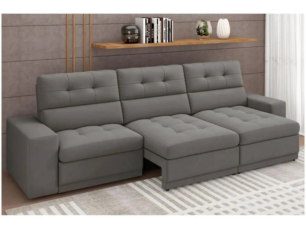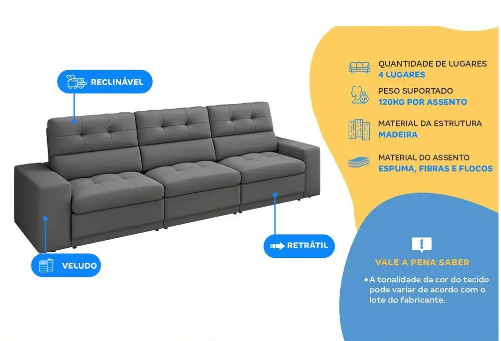 Sofá Retrátil Reclinável 4 Lugares Veludo Roma Besthouse